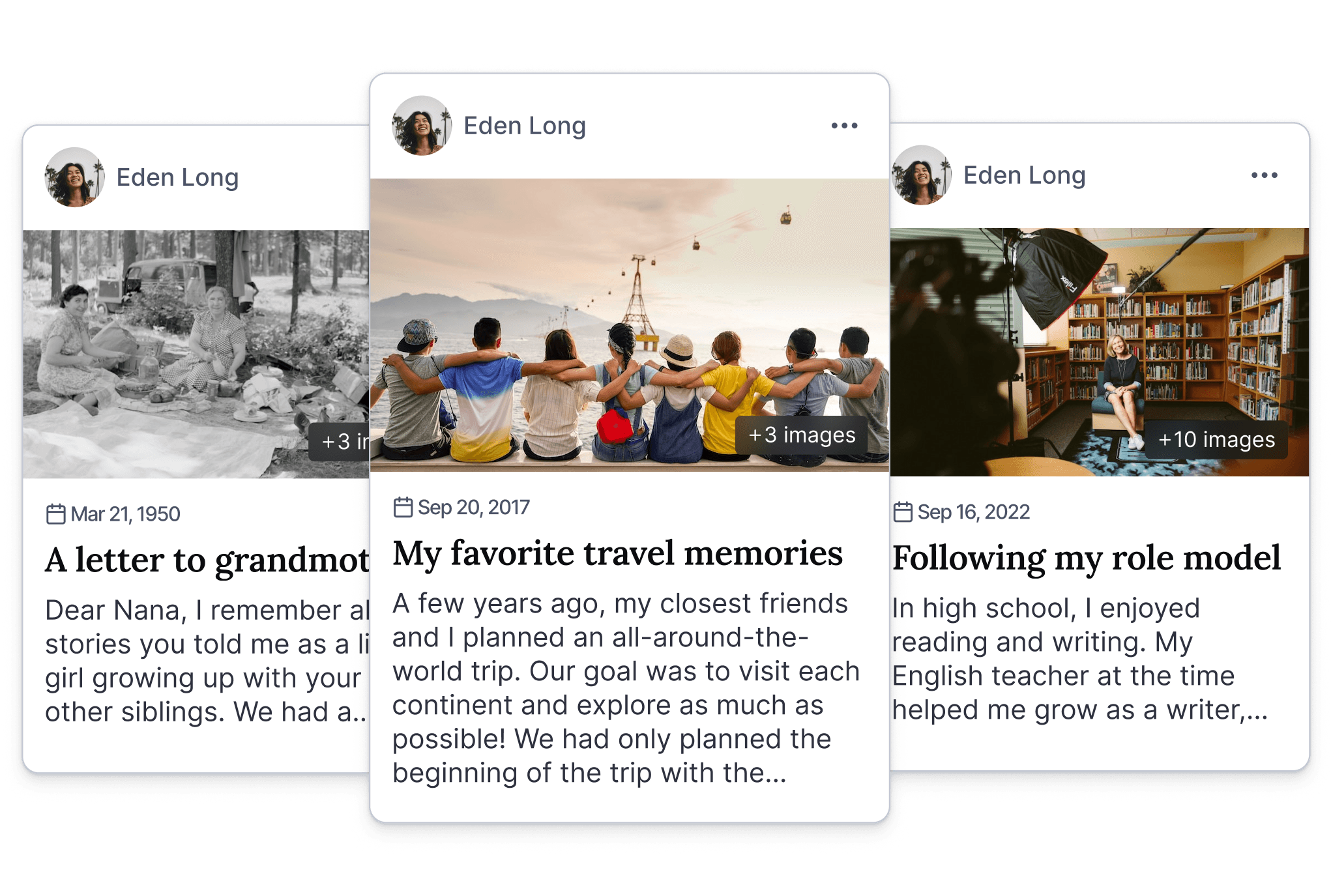 Whether it’s a daily journal entry, a life story, a poem - a "memory" is yours to craft how you want.